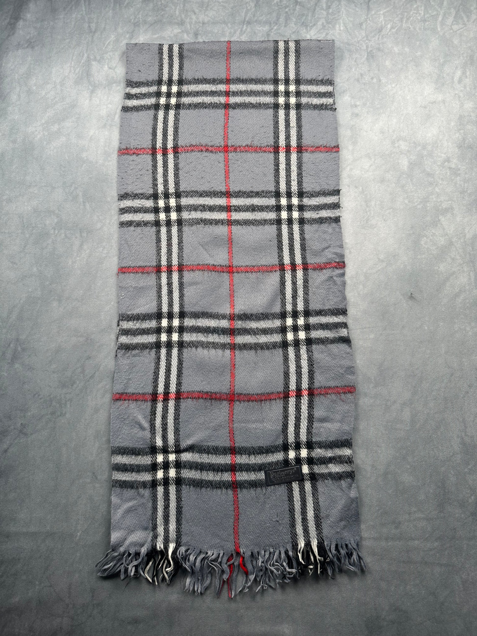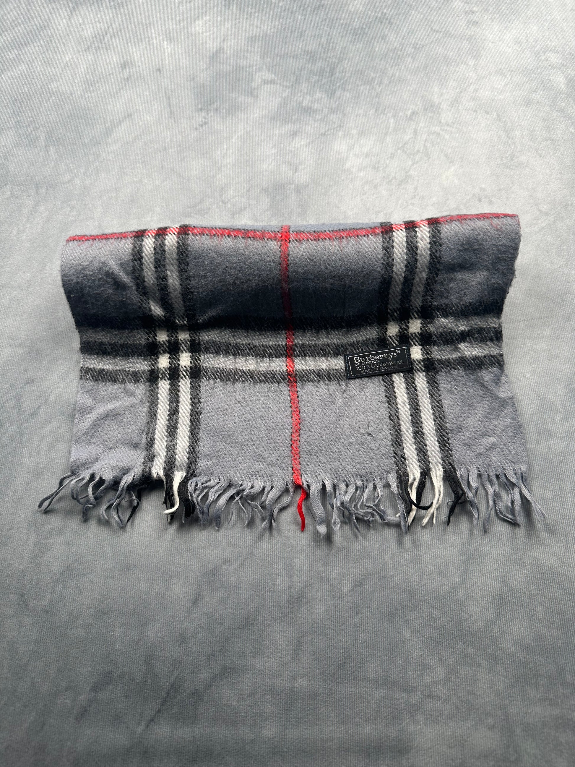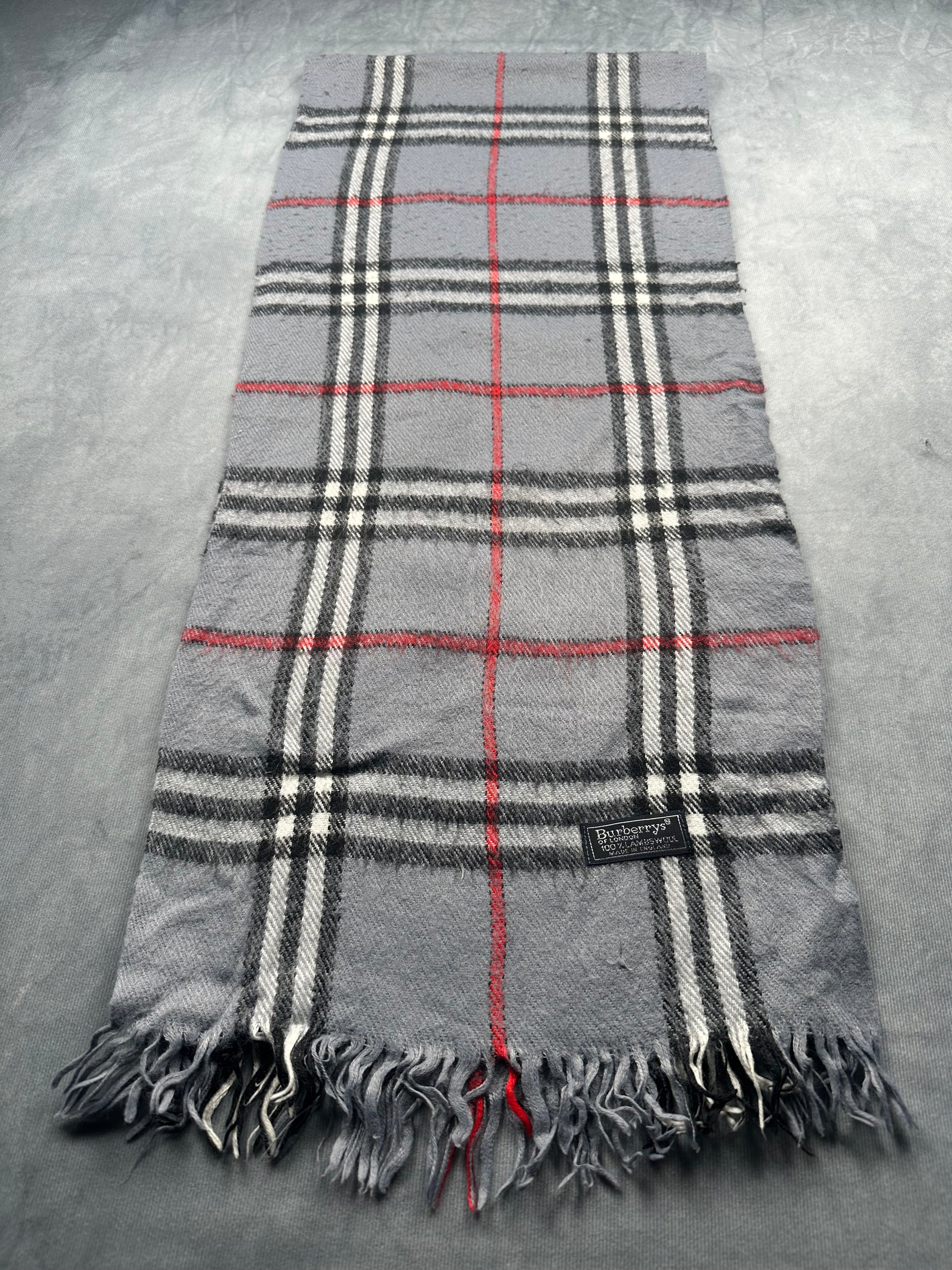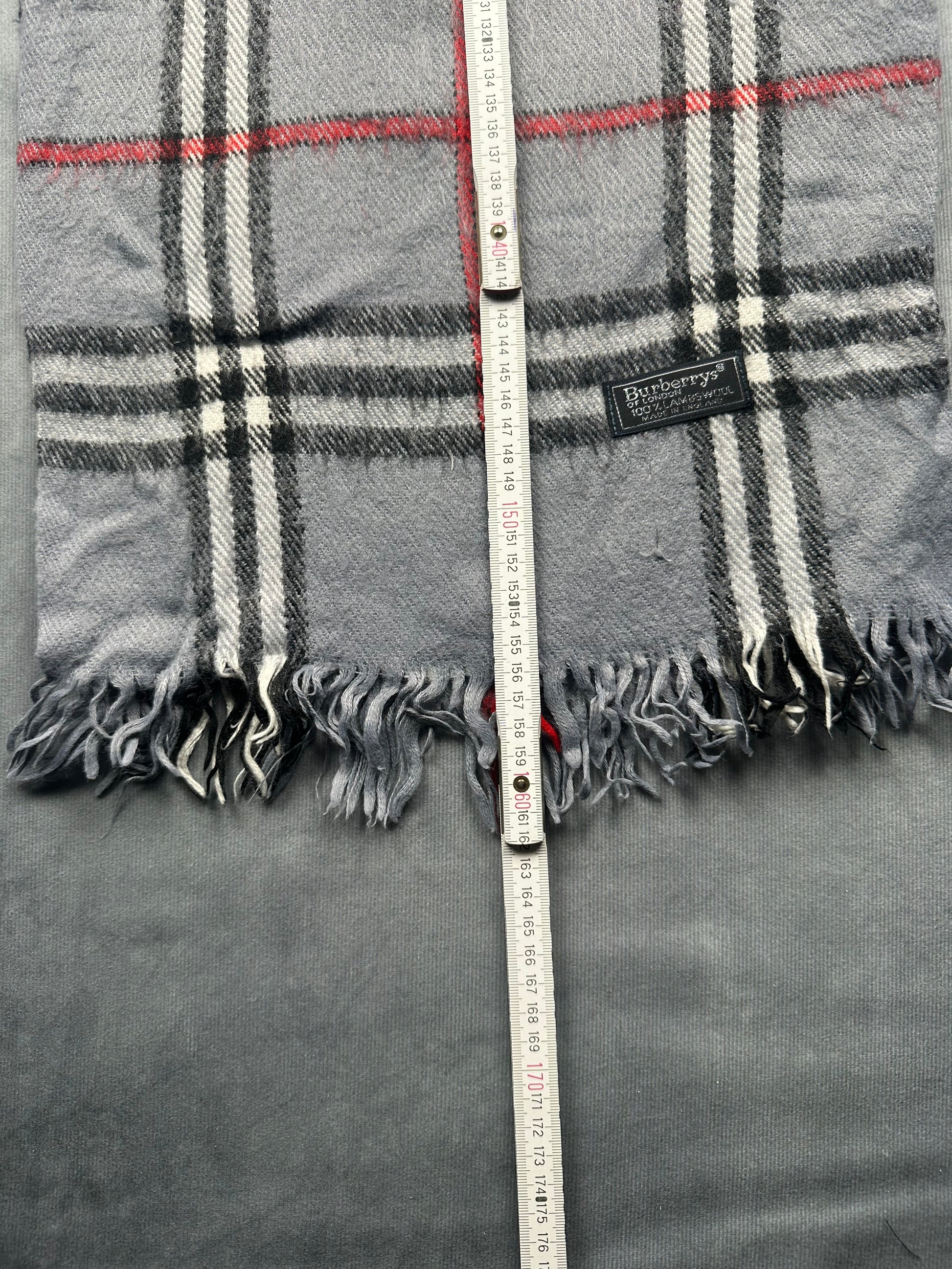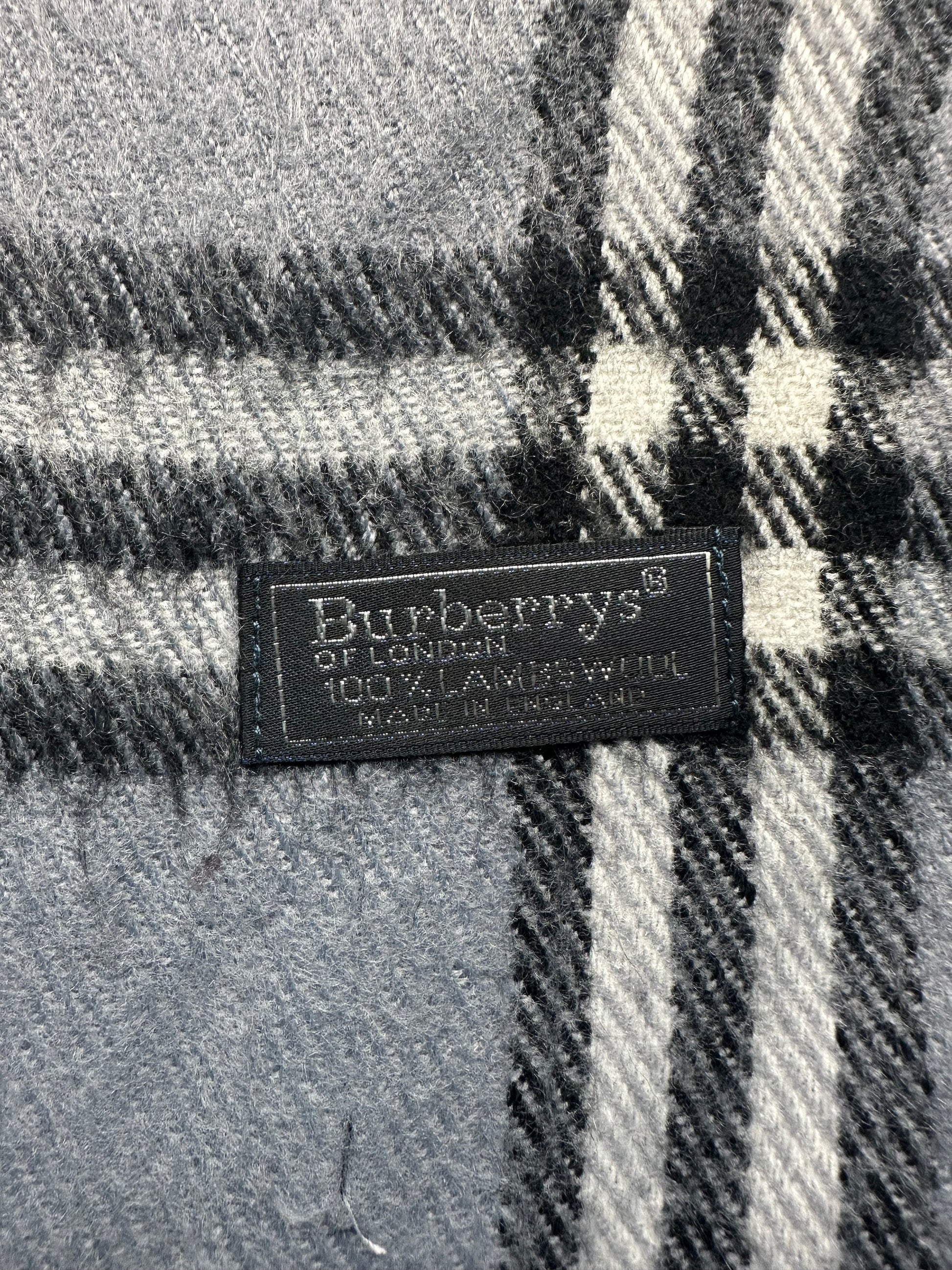 Burberry Vintage Schal | Karo-Muster | 100% Lammwolle | Grau