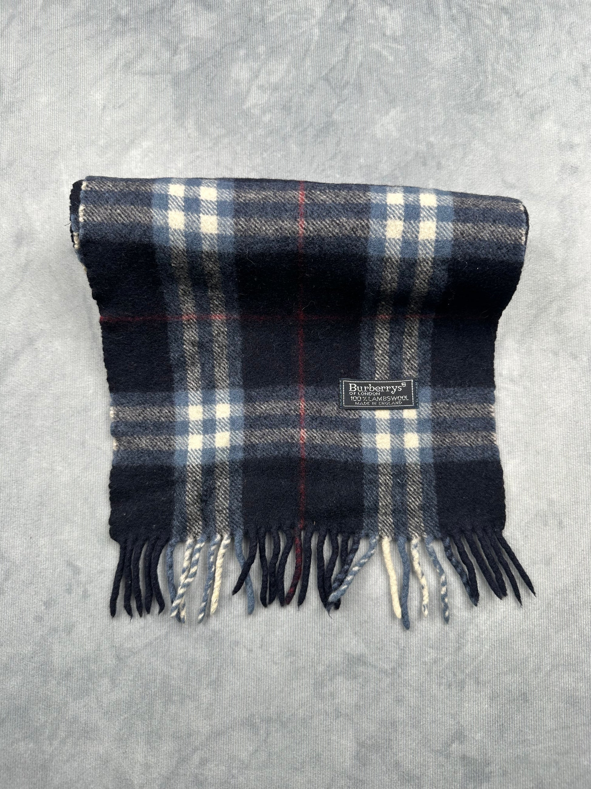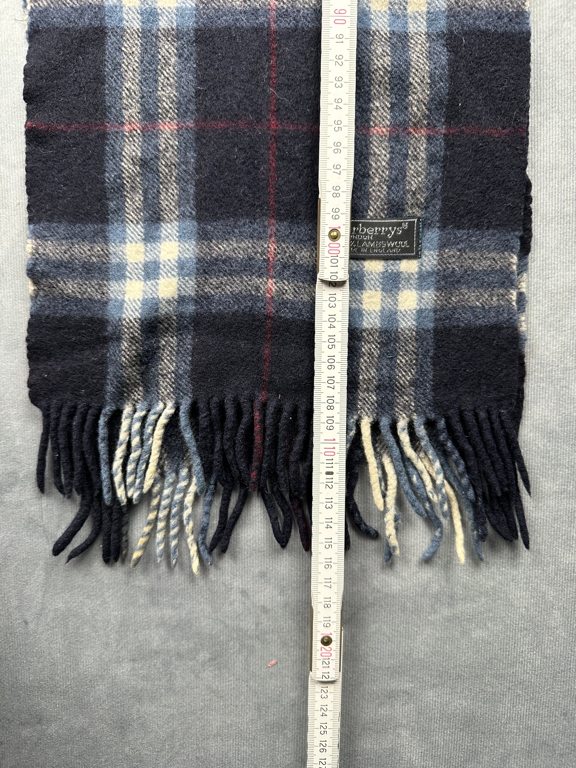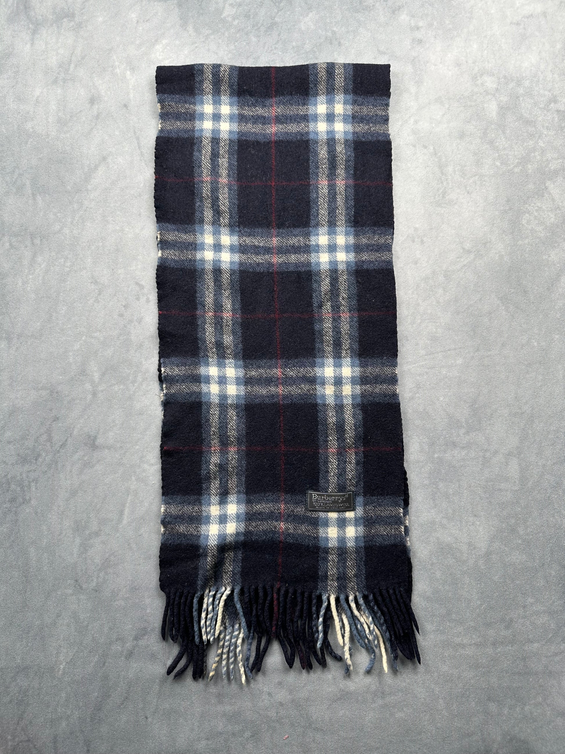 Burberry Vintage Schal | Karo-Muster | Made in England | 100% Lambswool - blau