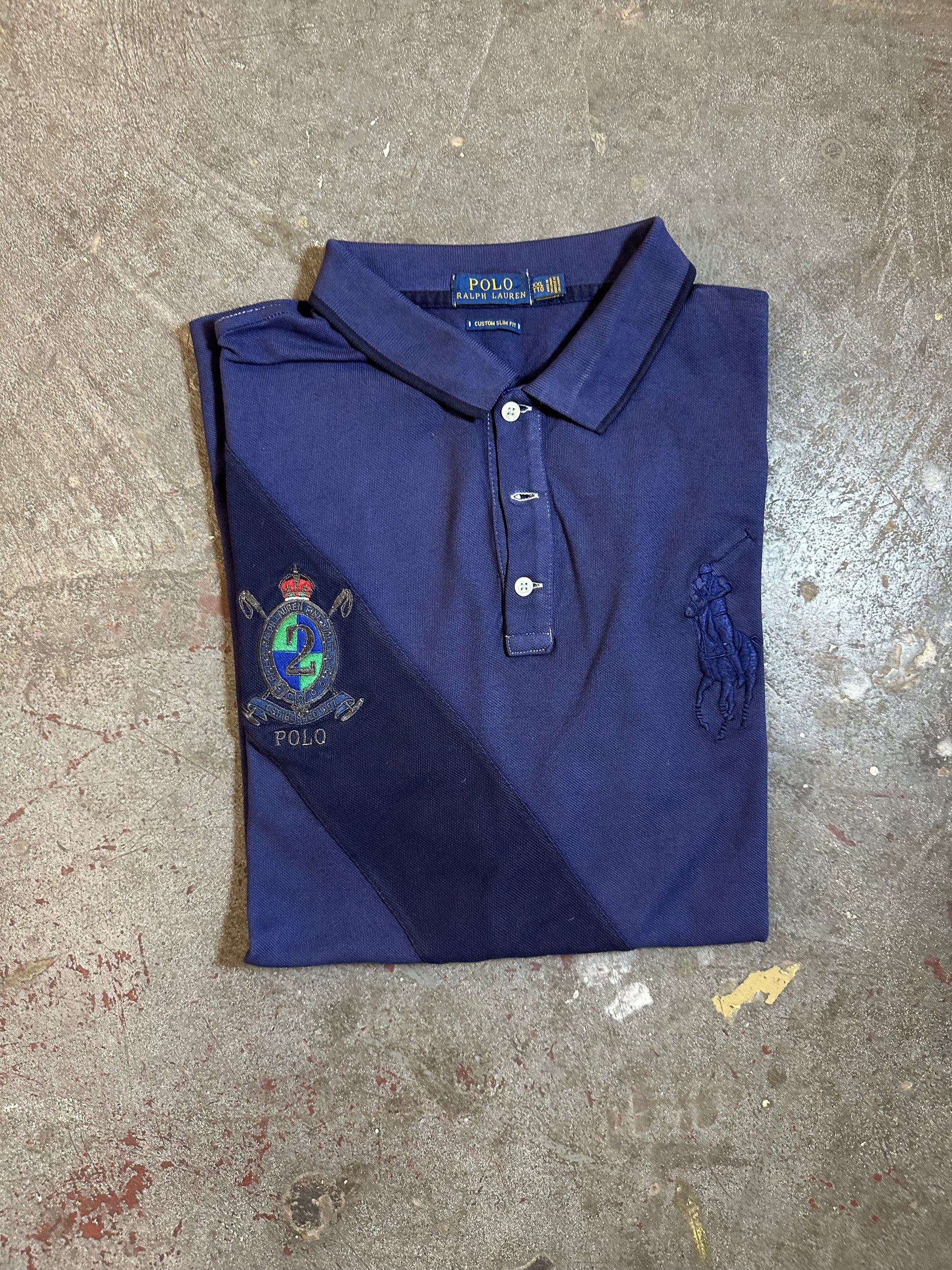#07 Ralph Lauren Navy Polo with Crest and Diagonal Stripe (XL)